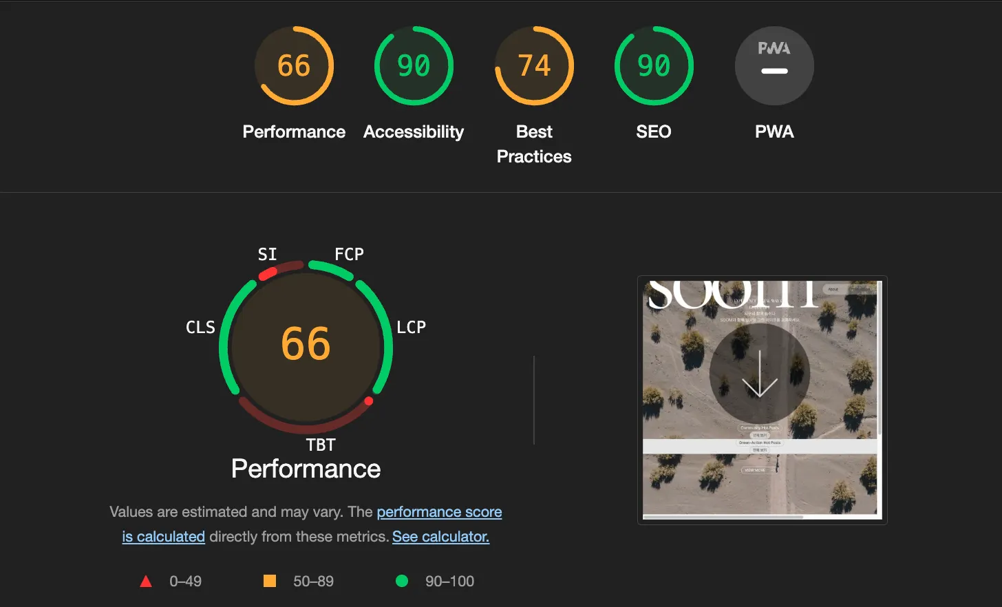 4/15 soom 배포 사이트 - lighthouse 레포트