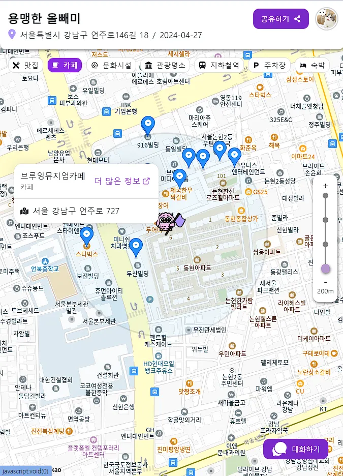 모임 확정 이후에는 모임 장소 주변 인프라도 확인해볼 수 있어요.