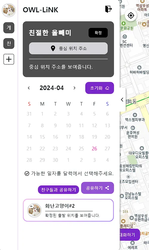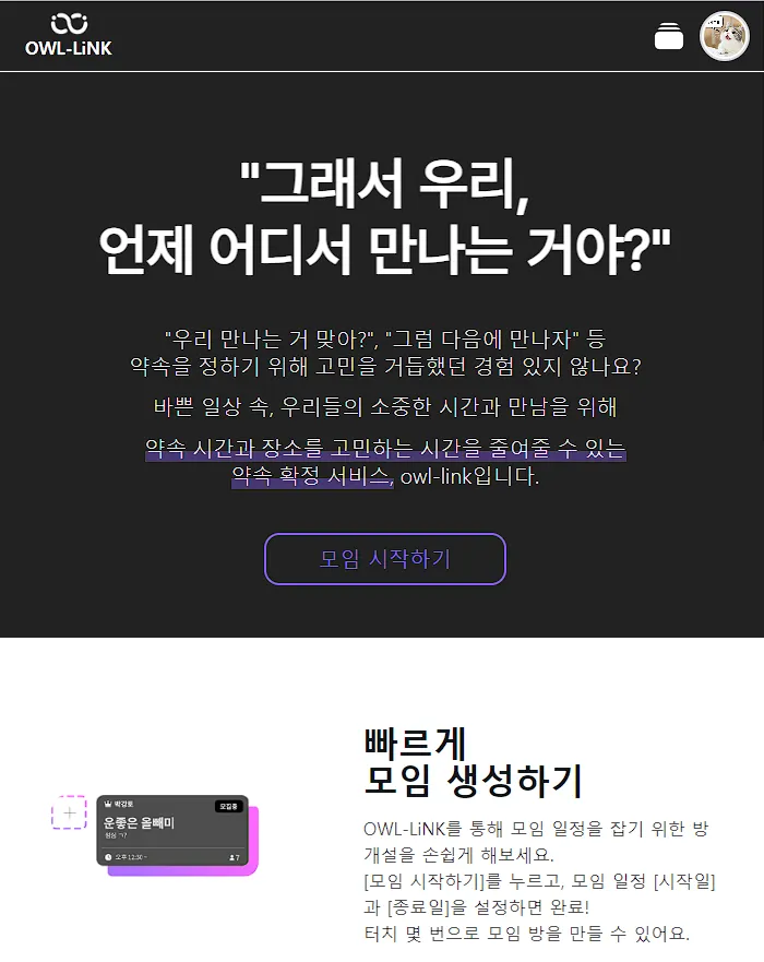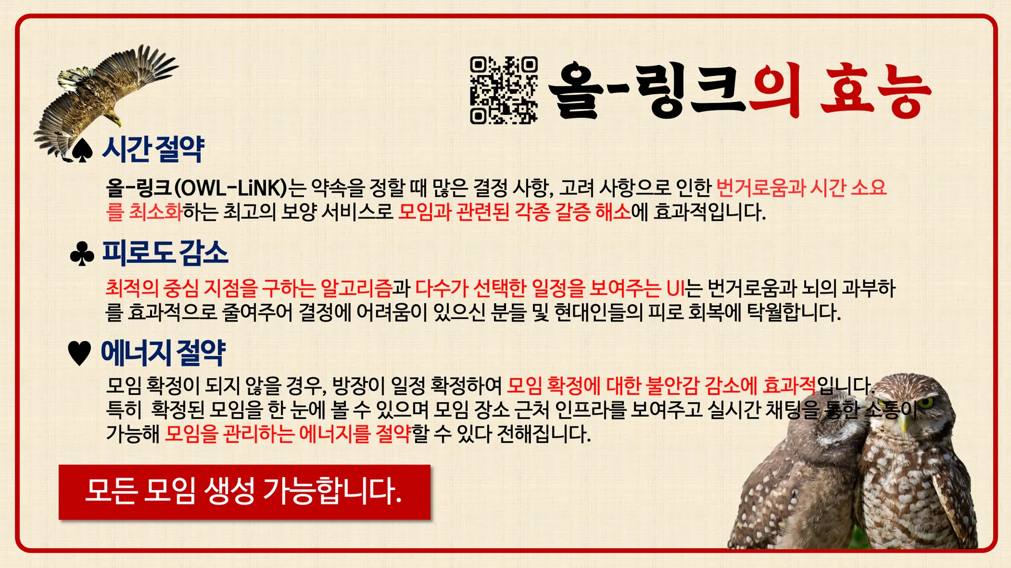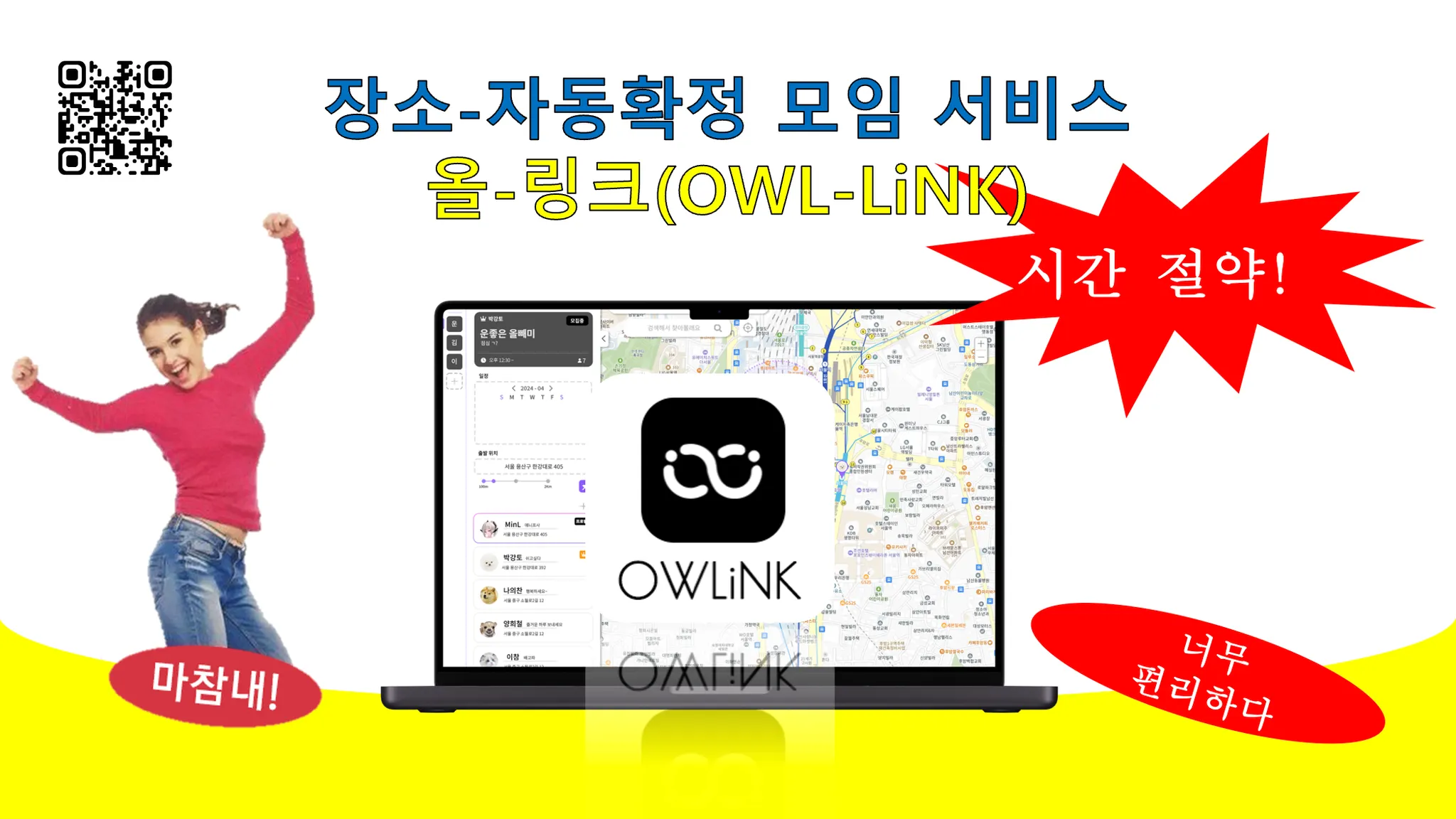 약속 시간과 장소를 고민하는 시간을 획기적으로 줄여주는 약속 확정서비스, OWL-LiNK 입니다.