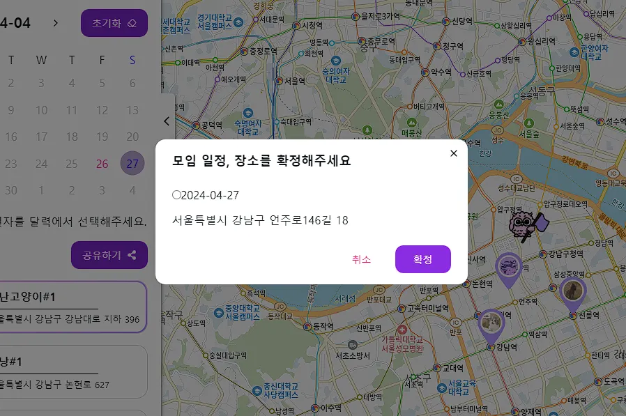 많은 분들께서 모임이 확정되기 전 일정에 변동 사항이 생겨 다시 일정을 조율해야 하거나, 서로의 바쁜 일정 등으로 이야기가 길어지고 모임 날짜가 미뤄지는 경험을 해보셨을 거라 생각합니다. 또한, 서로의 출발 위치를 고려해 적절한 중간지점에서 만나자는 약속을 해본 경험이 있지 않으신가요?